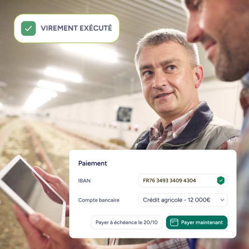- Paiement instantané ou programmé de plusieurs factures fournisseurs depuis un ou plusieurs comptes bancaires professionnels.