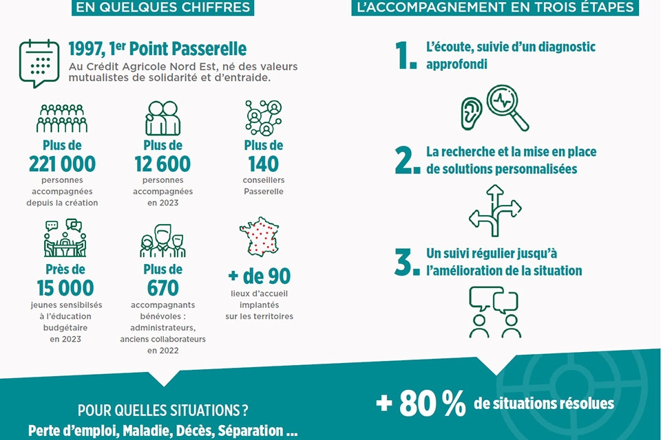 Il y a plus de 25 ans, le Crédit Agricole crée le premier Point Passerelle pour aider les personnes en difficulté financière à rebondir après un accident de la vie.